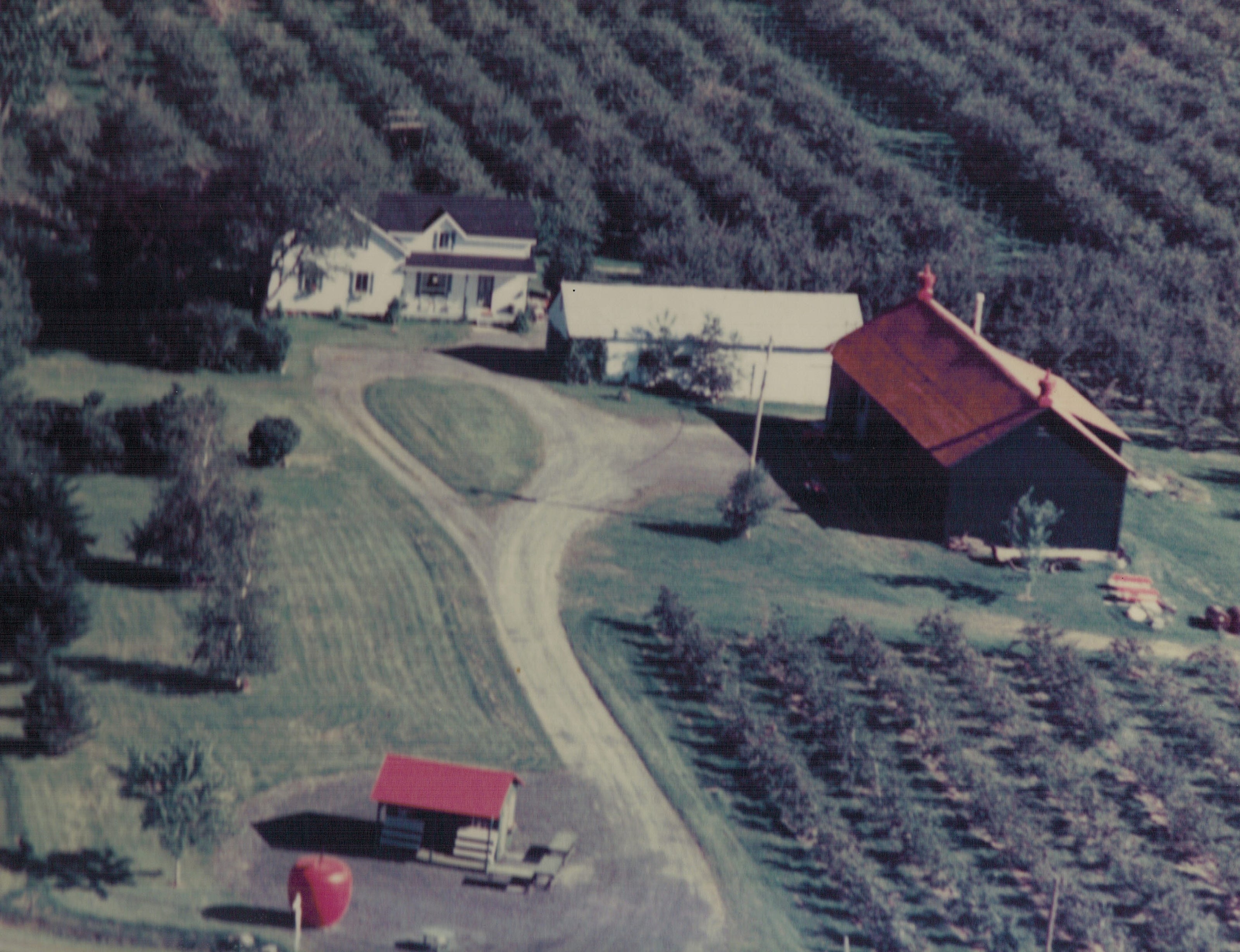 Le verger et les installations lors du démarrage de la cidrerie.